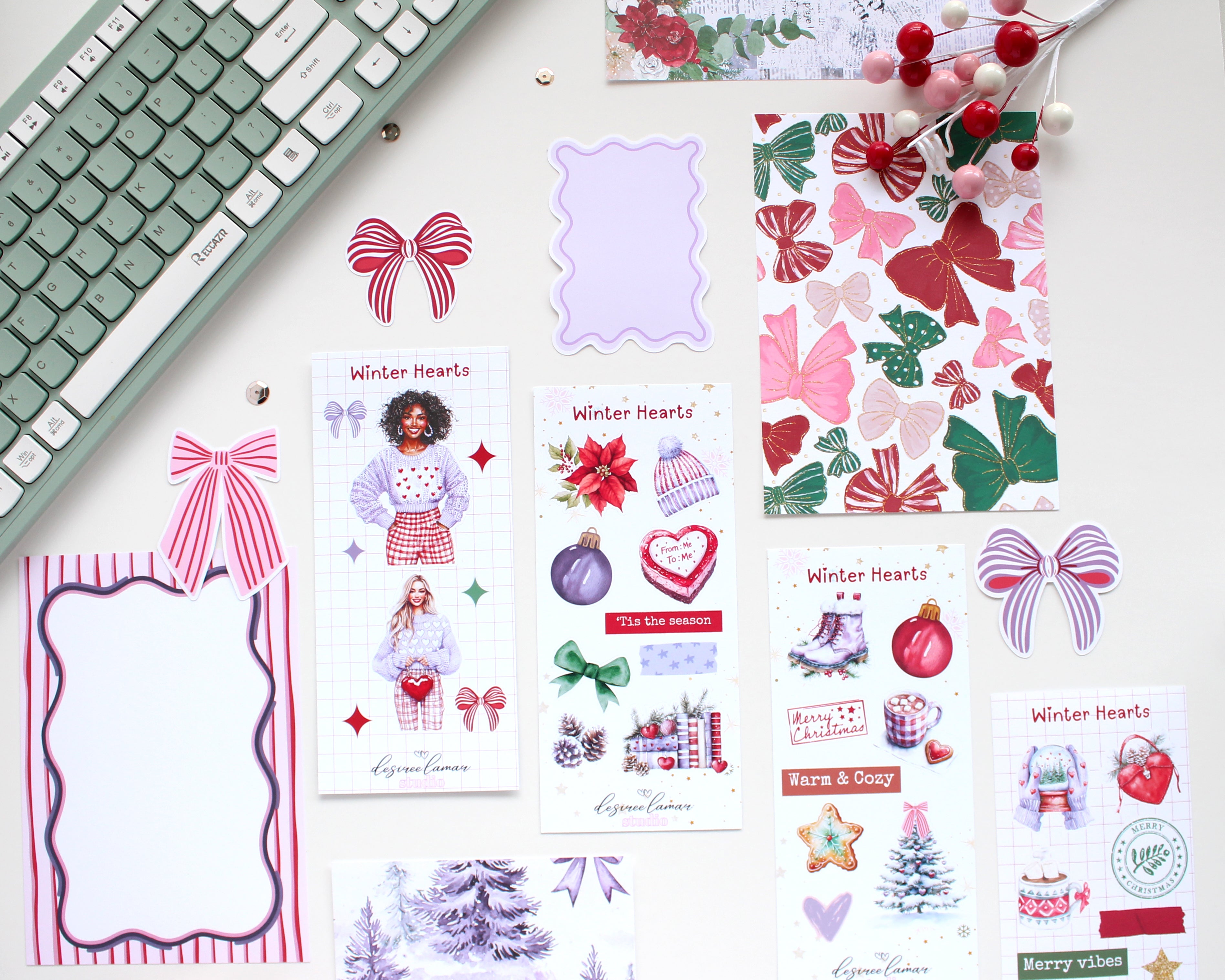 Celebrate the season with the Winter Hearts Journaling Bundle, a beautifully coordinated set designed to make your winter documenting effortless, heartwarming, and stunning on every page. This bundle brings together soft winter pastels, festive illustrations, and charming character art to create a collection that feels joyful, modern, and perfectly cozy for the season.