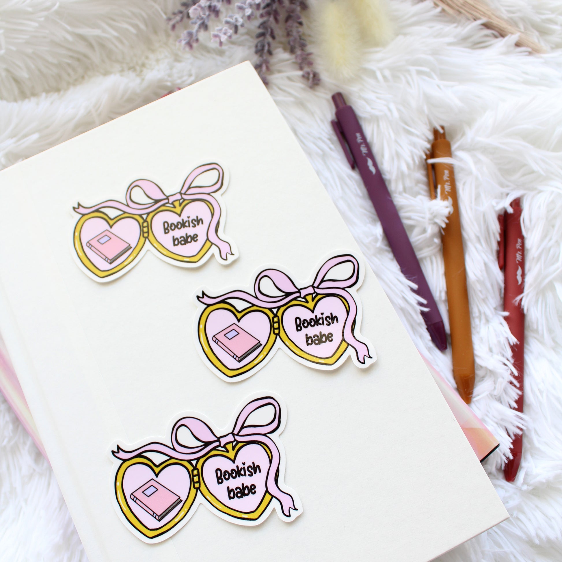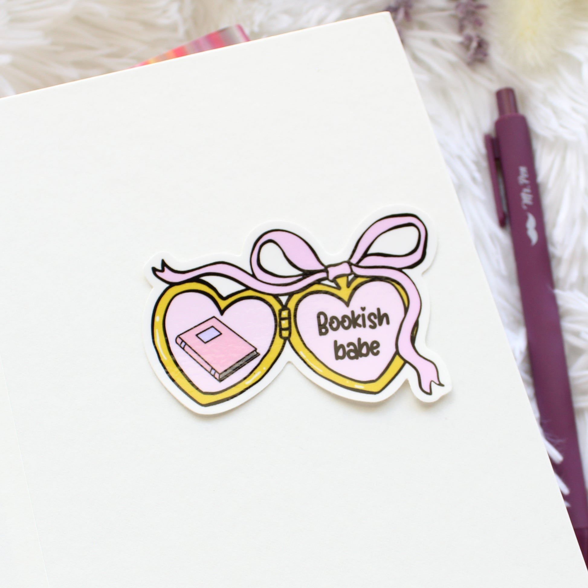 Calling all book lovers! This Bookish Babe Locket sticker is the perfect way to show off your love for reading. It's giving girlie era and romantasy vibes. Made from high-quality, glossy vinyl, each sticker is water-resistant, durable, and individually cut—perfect for laptops, water bottles, planners, and more!