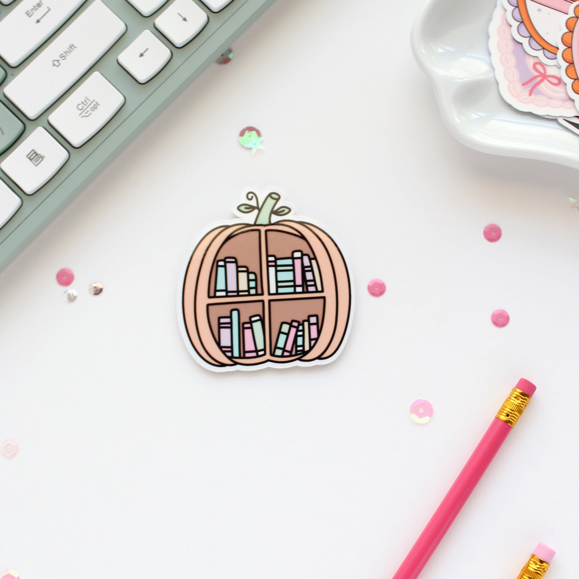Add a pop of cozy charm anywhere with this pumpkin bookshelf sticker. These durable, stickers feature soft pastel designs like pumpkins, bows, and books โ perfect for laptops, water bottles, and notebooks.