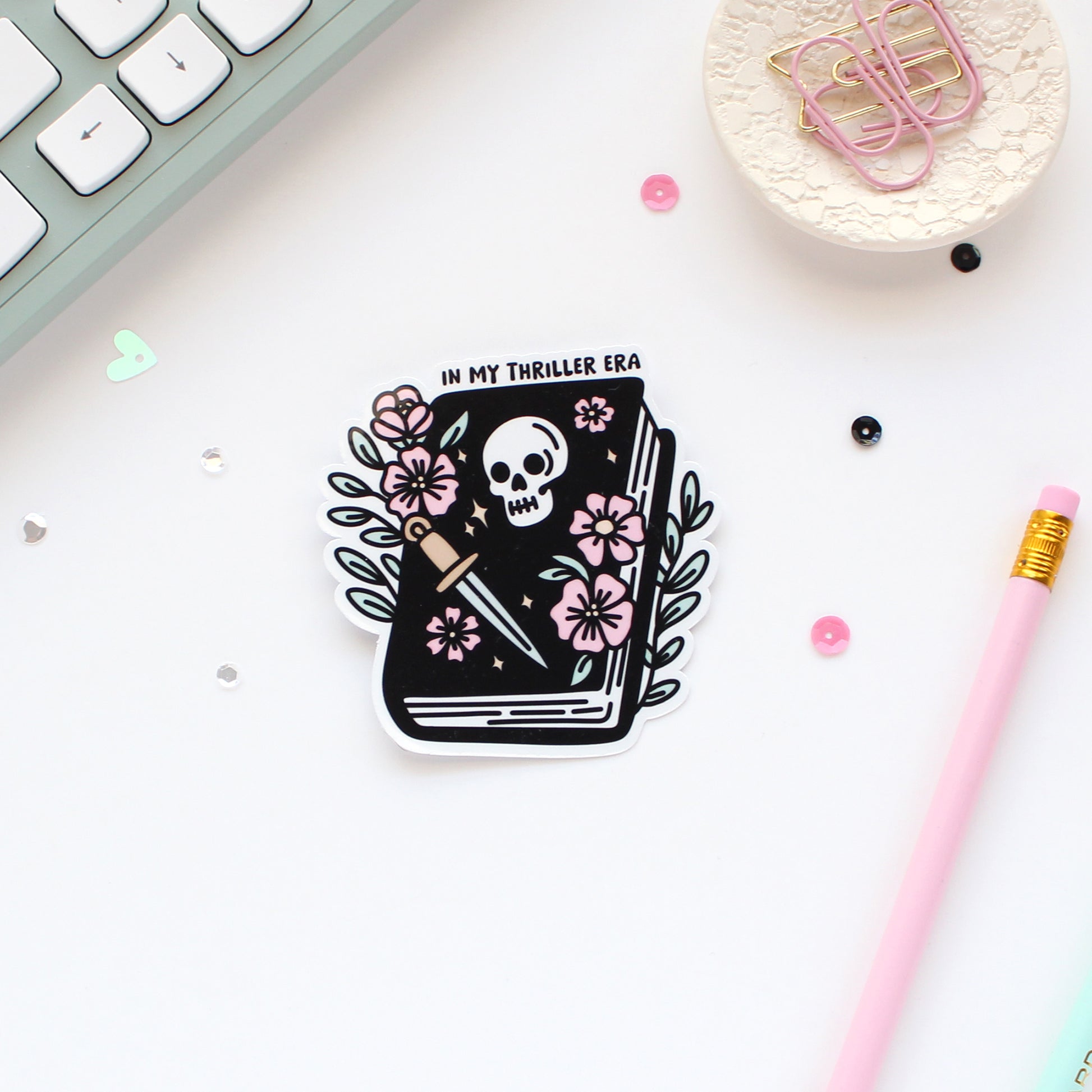 This glossy sticker features a sweet, spooky design perfect for decorating your planner, journal, or laptop. Made for readers who live for late-night mysteries and cozy horror vibes.