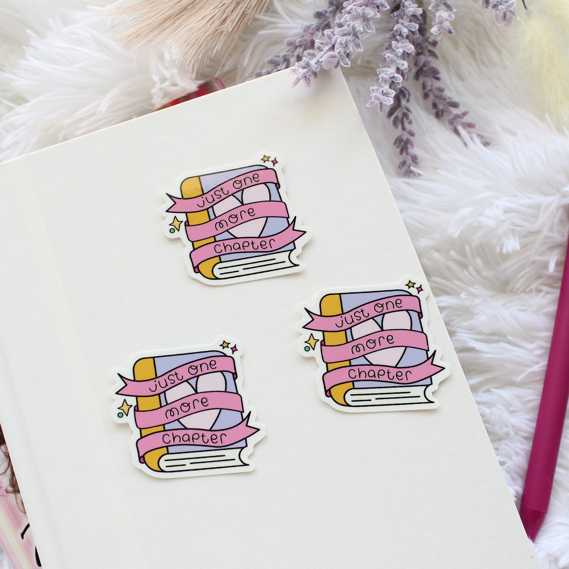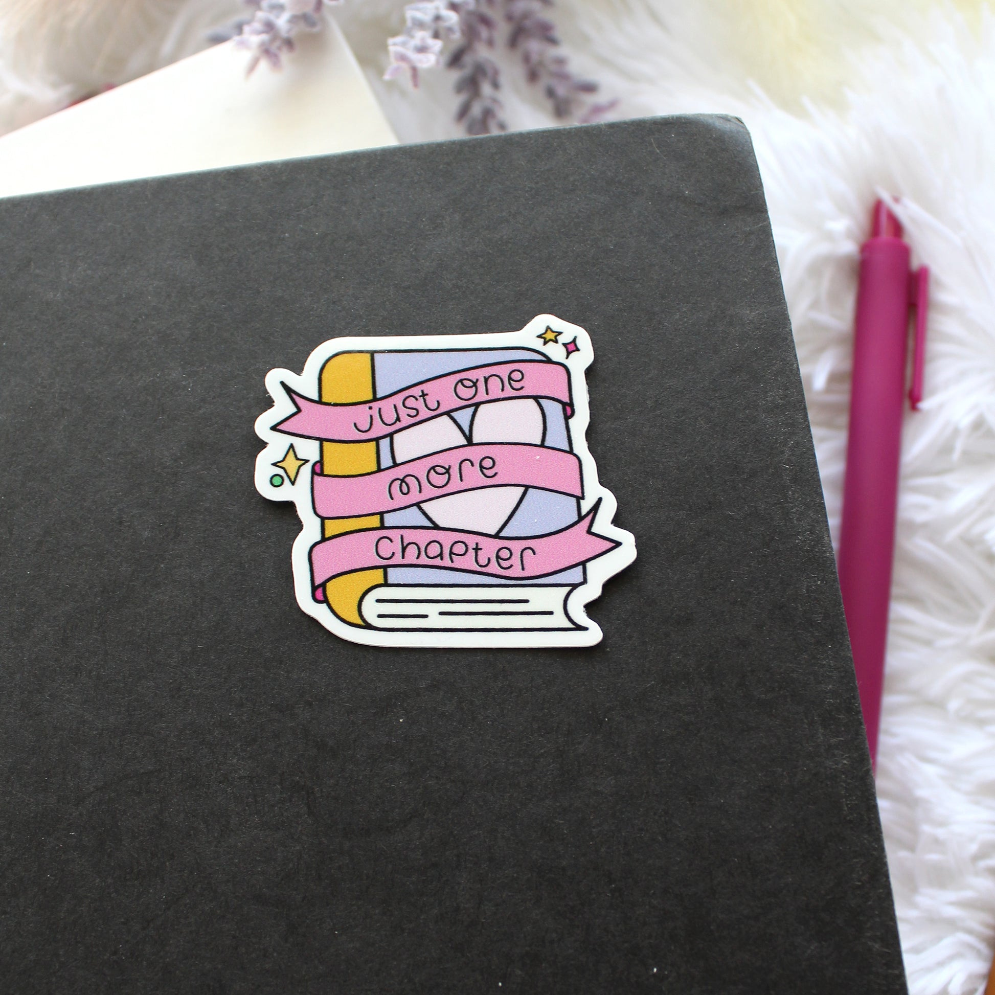 Calling all book lovers! Our Just One More Chapter vinyl sticker is the cutest little way to show off your love for reading. Made from high-quality, glossy vinyl, each sticker is water-resistant, durable, and individually cut—perfect for laptops, water bottles, planners, and more!